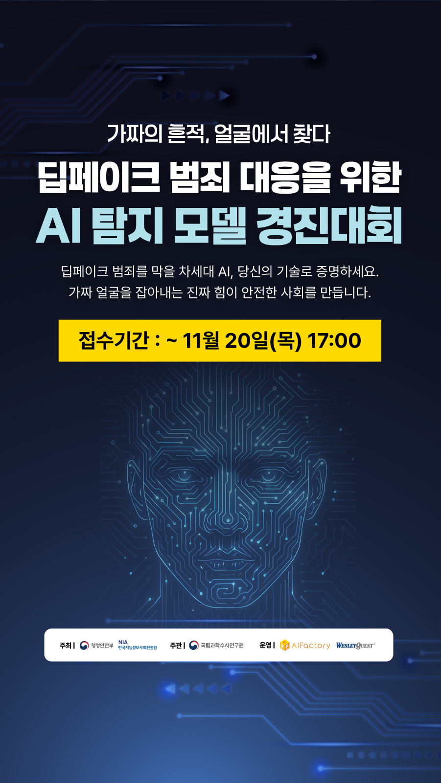 대회 운영: 10월 23일(목) 10시 ~ 11월 20일(목) 오후 5시