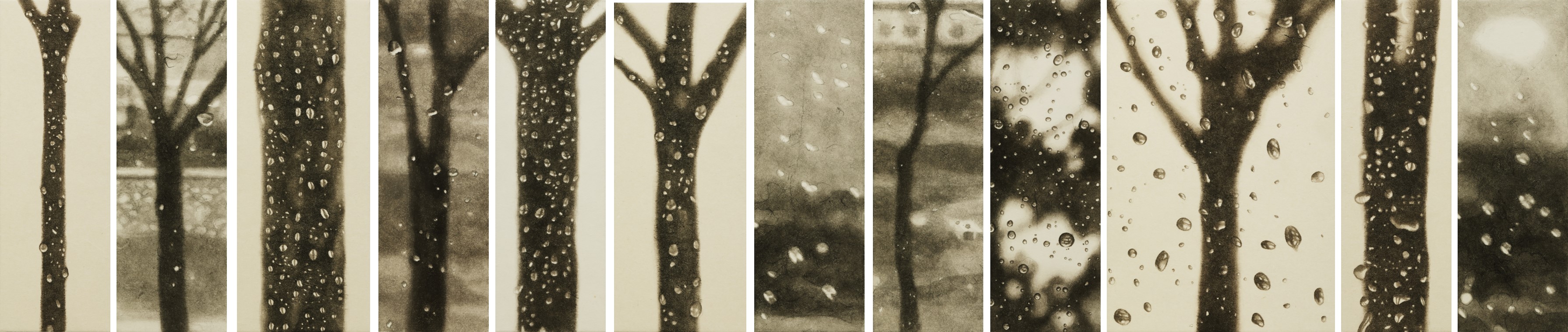 《김민지, 비 오는 770km의 풍경,30X10cm,30.5X21cm(12EA),한지에먹,2024》