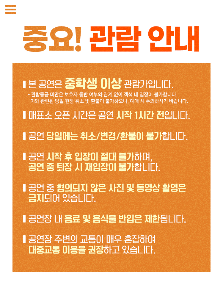2. 공연은 정시 시작 < 늦을시 절대 입장 불가 >