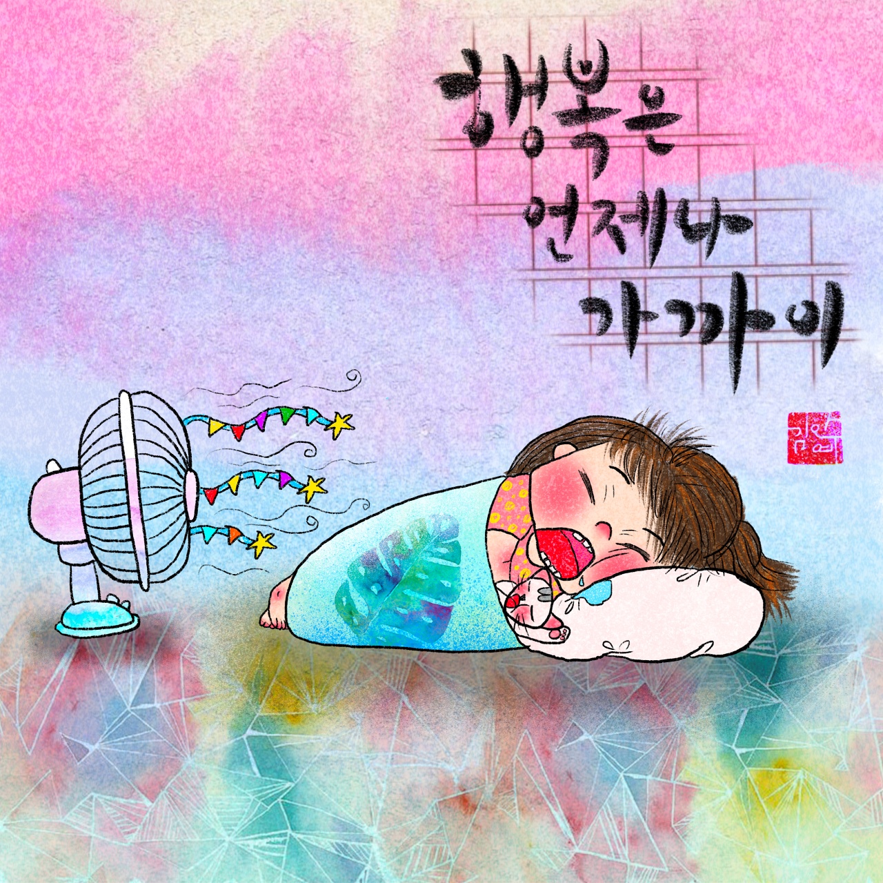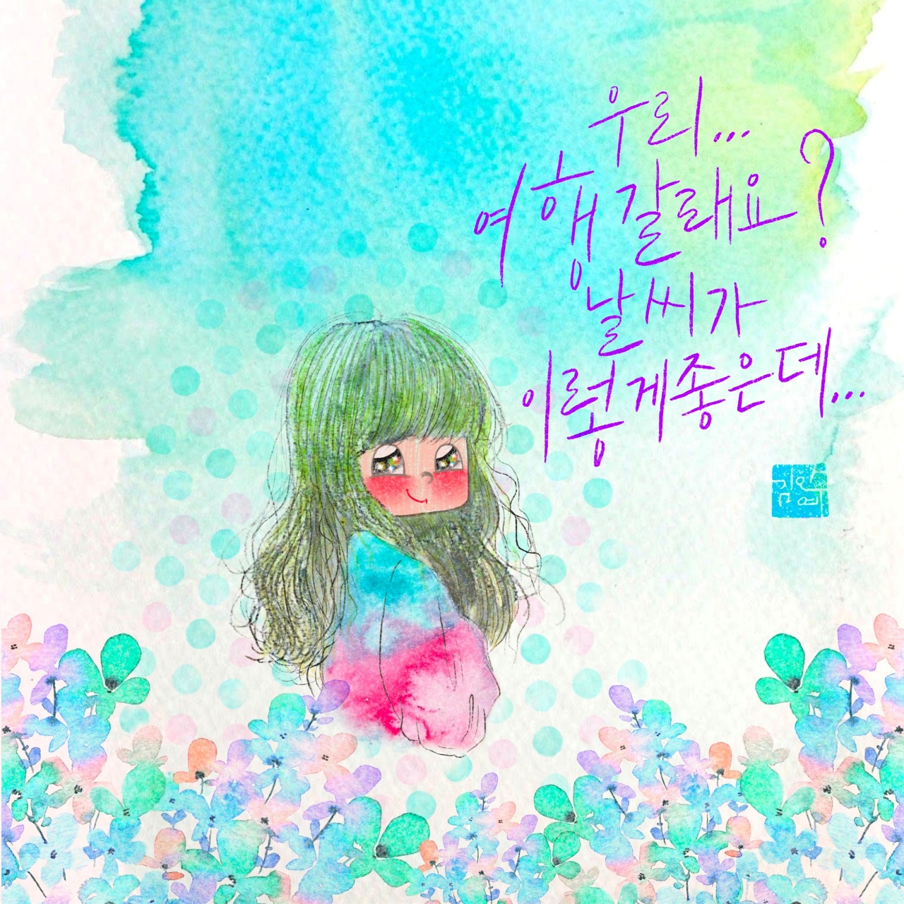 다시 그림을 그리면서, 마음을 진정시키고, 스트레스도 풀리더라구요. 그리고, 무엇보다 사랑스러운 세아이와 사랑하는 남편이 제 그림을 멋지다고, 예쁘다고 칭찬도 해주고, 세아이가 그림그리는 작가라는 엄마를 자랑스러워할 때 보람을 느낍니다.