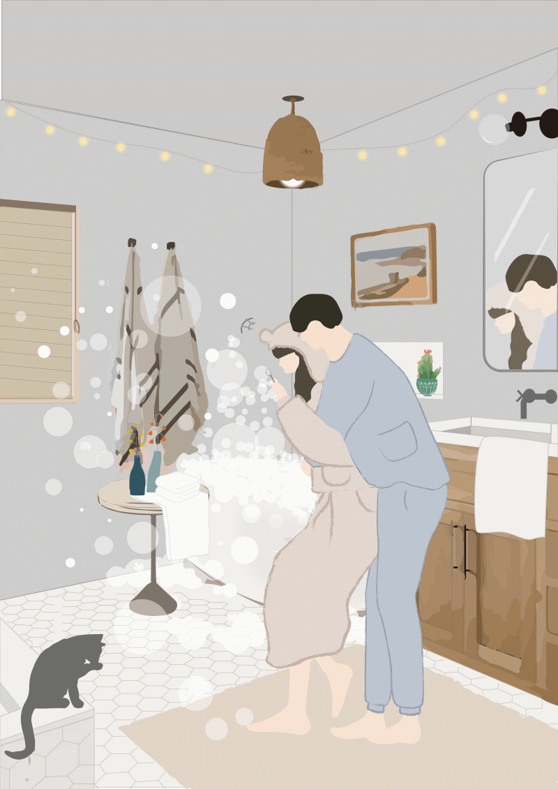 그 뒤로 저 또한 행복을 담고 싶다 라는 생각을 하게 되었어요 그냥 무턱대고 좋아하는 걸 그리는 게 아니라 그림 안에 스토리와 감정을 담아보자 라는 생각을 하며 그렇게 창작활동에 첫 시작을 밟았던 것 같아요. 그러다 그냥 처음으로 제가 좋아하는 사람이 생기게 되었어요. 그러다 그 사람과 함께 있는 모습들을 표현해 내고 그림으로 담아가며 점차 자리를 잡아갔던 것 같아요 학창시절 때부터 미래에 영원히 함께하고 싶은 함께할 모습을 담으며 스토리를 만들어가고 있어요. 어떻게 보면 진부하고 그냥 그런 사랑이야기지만 제가 느꼈던 감정을 상황을 배경으로 그림을 그려내니까 뭔가 다른 두근거림도 느낄 수 있더라고요