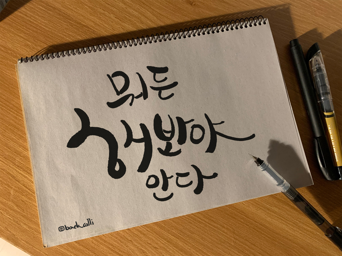 그러다가 우연히 유튜브 방송에서 캘리그라피로 위로를 받았다는 내용을 보게 됐고 '이거다'라고 머리 속에 팍 박히고 그게 지금 여기까지 왔습니다 :)