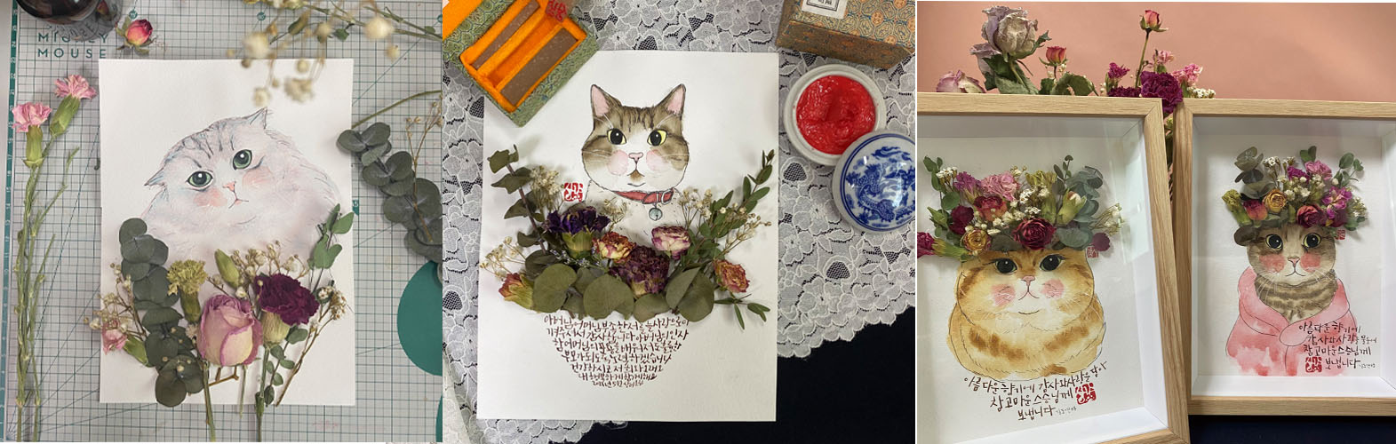 캘리그라피와 그림 외에도 악세서리나 기타재료들을 콜라보하여 저만의 느낌이 담긴 작품이나 아트상품을 개발하는 것이에요.
